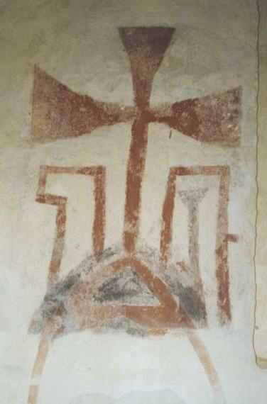 Das Weihekreuz in der Apsis ähnelt den Weihekreuzen, die