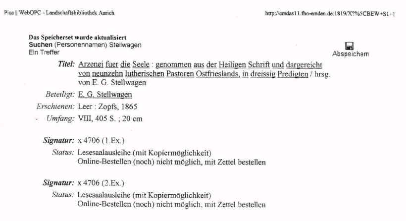 [ Home ] [ Ostfriesisches Prediger-Denkmal ] [ Pastor Taute ] [ Pastor Johann Henrici Klinckhammer ] [ Pastor Dirk Siebens Fischer ] [ Pastor Stellwagen ]