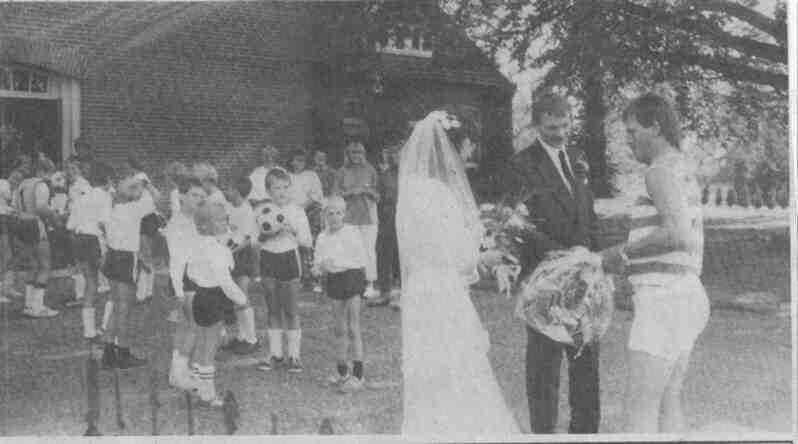 Potshausen sind über die Patentanten der Braut gegeben. Vom TSV Klostermoor überreichte Bernhard Bunger einen Blumenstrauß, und die F- Jugend stand mit neuen Bällen Spalier. Foto: