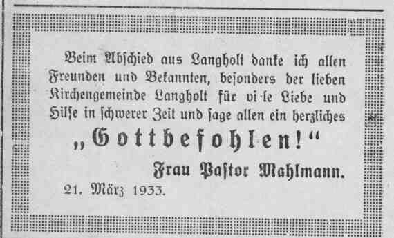 Der Text und die Anzeige sind der Ostfriesischen Rundschau vom 20. bzw. 21.3.1933 entnommen. – (Die „Ostfriesische Rundschau“ war ein neugegründetes Konkurrenz-Unternehmen, nachdem de Vries den „Anzeiger für das Overledinderland“ an den Drucker Siebe Ostendorp verkauft hatte und ihm dieser Schritt im Nachhinein „Bauchschmerzen“ bereitete. Mit Hilfe einiger Geldgeber (u. a. der Fehntjer Müller!) gründete er deshalb die Ostfriesische Rundschau (dort wo heute Foto-Fischer sein Geschäft hat). – Es gibt kaum noch Archiv-Exemplare dieser nur kurze Zeit bestehenden Konkurrenz-Zeitung. Einige Ausgaben befinden sich in meinem Besitz.)